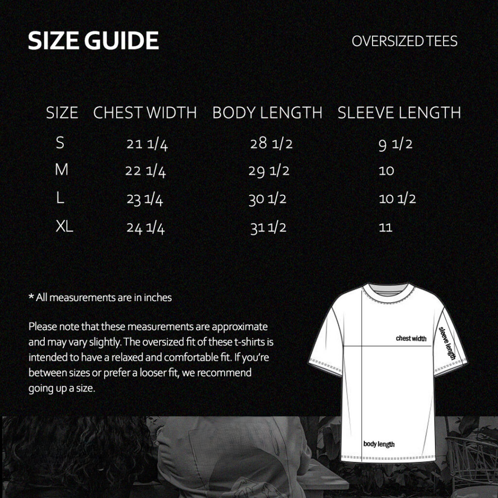 Our t-shirt is designed to have a relaxed, oversized fit. For a true oversized look, order your usual size. If you prefer a more fitted style, go one size down.