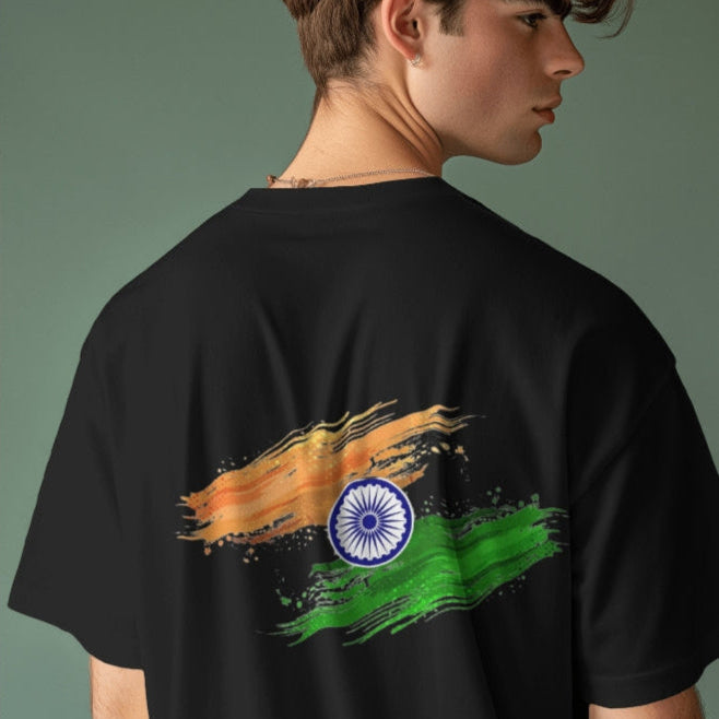 Dynamic Brush Stroke Art – A visually stunning interpretation of the Indian flag with saffron, white (represented by the fabric and Ashoka Chakra), and green strokes flowing with energy.